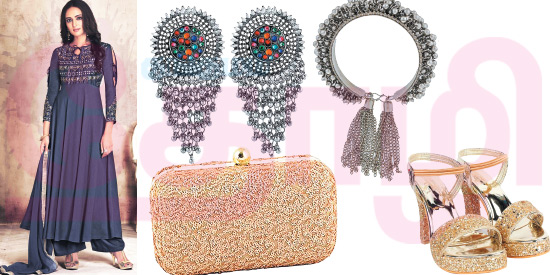 பலருக்கும் இந்தக் காம்போ போடுவதில் கொஞ்சம் தயக்கம் இருக்கவே செய்கிறது. ஏனெனில் அனார்கலி – பலாஸ்ஸோ இந்த ரெண்டுமே ஃபிளார் எனில் பார்க்க நன்றாக இருக்குமோ என்னும் சந்தேகம். ஆனால் எவ்வித கிராண்ட் அக்ஸசரிஸ்களும் இல்லாமல் காட்டனில் அணிந்தால் கூட கிராண்ட் லுக் கொடுப்பதில் சிறப்பு வாய்ந்தவை இந்த அனார்கலி- பலாஸ்ஸோ சூட்கள். இவைகளுக்கு சிம்பிள் அக்ஸசரிஸ்கள் ஒருவேளை கழுத்தில் டிசைன்கள் இல்லாமல் இருப்பின் கிராண்டான கம்மல் என மேட்ச் செய்தால் பாலிவுட் ஸ்டைல் கிடைக்கும்.