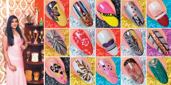 1000க்கும் மேல் வைட் வெரைட்டி ஆஃப் நெயில் ஆர்ட் டிரெண்ட்ல இருக்கு. எங்கள் ஸ்டுடியோவில் 50 வெரைட்டி பயன்படுத்துகிறோம். லேட்டஸ்ட் டிரெண்ட் என்னவோ அதற்கான கிட்ஸ் எங்கள் ஸ்டுடியோவில் கண்டிப்பாக உண்டு. ஆர்ட் தாண்டி இப்போதைய இளைஞர்கள் புது டிரெண்ட் நெயில் எக்ஸ்டென்ஷன்ஸ். பெரும்பாலும் மாடல்ஸ் மற்றும் செலிபிரேட்டிஸ் நெயில் எக்ஸ்டென்ட்ஸை விரும்பி வந்து செய்து கொள்கிறார்கள்.