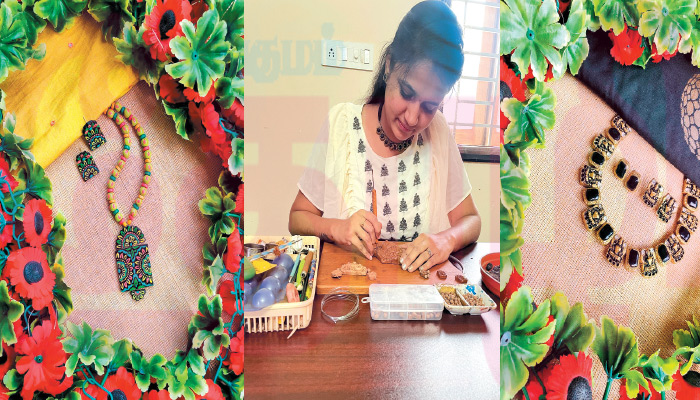 வீட்டில் கொஞ்சம் ஸ்ட்ரிக்ட் என்பதால், என்னால் அதை தவிர்க்க முடியாமல் போனது. வீட்டில் எந்த வேலையும் செய்யாமல் சும்மா இருக்க பிடிக்கல. எனக்கு சின்ன வயசிலேயே ஆர்ட்ஸ் துறையில் ஆர்வம் அதிகம். அதனால் +2 தேர்வு முடிந்த பிறகு விடுமுறை நாட்களில் டெரக்கோட்டா ஜூவல்லரி செய்ய கத்துக்கிட்டேன். ஆனால் அது நான் நினைச்ச மாதிரி வரலை. அதன் பிறகு கல்லூரி படிப்பு என்று இருந்ததால் தொடர முடியல. இப்பதான் ஃப்ரீயா இருக்கோமே… அதையே செய்து பார்க்கலாம்னு செய்ய ஆரம்பிச்சேன்.
