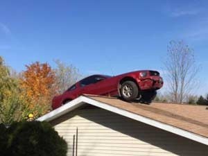 • சாலையில் தாறுமாறாக ஓடி வீட்டின் கூரையில் ஏறிய கார்…!!
