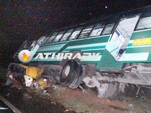 அந்த சமயத்தில் மழை பெய்து கொண்டிருந்ததால் எதிரே வந்த வாகனம் தெரியாததால் இந்த விபத்து ஏற்பட்டது. ஆட்டோ பஸ்சுக்கு அடியில் சிக்கி நசுங்கியதால் அதிலிருந்த 3 பெண்கள் உள்பட 5 பேர் உடல் சிதைந்து பலியானார்கள்.