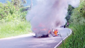 • ஹட்டன் – கொழும்பு பிரதான வீதியில் தீ பற்றி எரிந்த கார்…!!