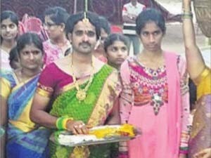 • ஆந்திராவில் வினோத சடங்கு: பெண் வேடத்தில் வீடு வீடாக சென்று ஆசி பெறும் மணமகன்..!!