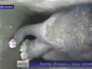 சாக்கடை தொட்டியில் சிக்கித் தவித்த குட்டி யானை மீட்பு…!!