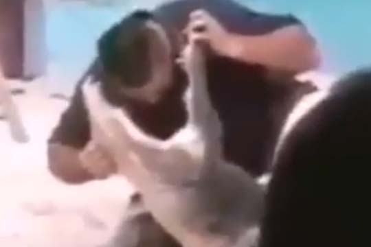 இவ்வாறே நபர் ஒருவர் இராட்சத முதலையின் வாயிற்குள் தனது தலையை நுழைத்து சாகசம் காட்ட முற்பட்டுள்ளார். இதன்போது தருணம் பார்த்து காத்திருந்த முதலை அவரது தலையை கௌவியுள்ளது.
