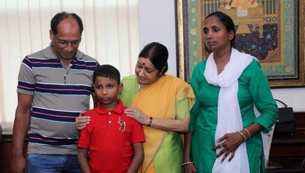 பின்பு அவன் பெற்றோரிடம் ஒப்படைக்கப்பட்டான். சிறுவனை மீட்பதற்கு உரிய நடவடிக்கை எடுத்த சுஷ்மா சுவராஜிக்கு சிறுவனின் பெற்றோர்கள் நன்றி தெரிவித்துக்கொண்டனர்.