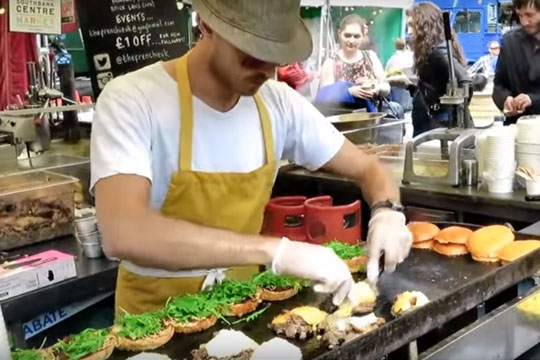 ஆம் லண்டன் பாஸ்ட் புட் கடை ஒன்றில் Duck Meat Burger தயாரிக்கும் அழகினையும், ஸ்டைலையுமே இங்கு காணப்போகிறீர்கள். என்னங்க இதைப் பார்த்ததுமே லண்டன் போக ஆசை வந்திருச்சா?
