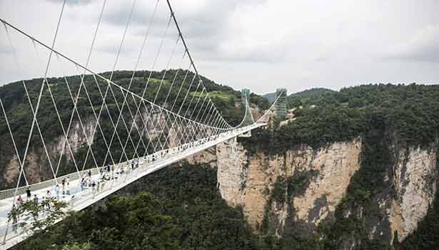 சுமார் 1,410 அடி(430 மீட்டர்) நீளத்தில் இந்த பாலம் கட்டப்பட்டுள்ளது. ஹூனன் மாகாணத்தில் உள்ள ஜங்ஜியஜியி கேன்யான் என்ற பகுதியில் தரையில் இருந்து 300 அடி உயரத்தில் இந்த பாலம் உள்ளது.