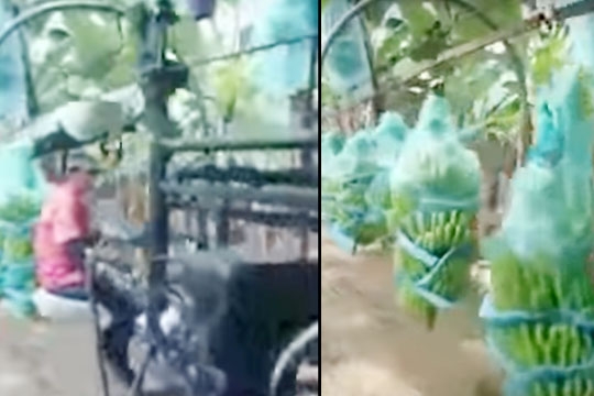 அதே போலவே பிரம்மாண்டமான வாழைத்தோட்டம் ஒன்றில் இருந்து வெட்டப்பட்ட பல வாழைக் குலைகளை கழஞ்சிய சாலைக்கு இலகுவாக கொண்டு செல்வதற்காக சாதாரண விவசாயி ஒருவர் பயன்படுத்தும் நுட்ப முறையே இதுவாகும்.