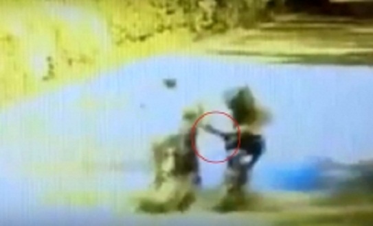 வீதியில் மோட்டார் சைக்கிளில் பயணித்துக்கொண்டிருந்த பெண் ஒருவரை பின்னே பிறிதொரு மோட்டார் சைக்கிளில் வேகமாக வந்த நபர் காலால் உதைந்துள்ளார். இதன்போது கட்டுப்பாட்டை இழந்த பெண் கீழே விழுந்துள்ளார்.