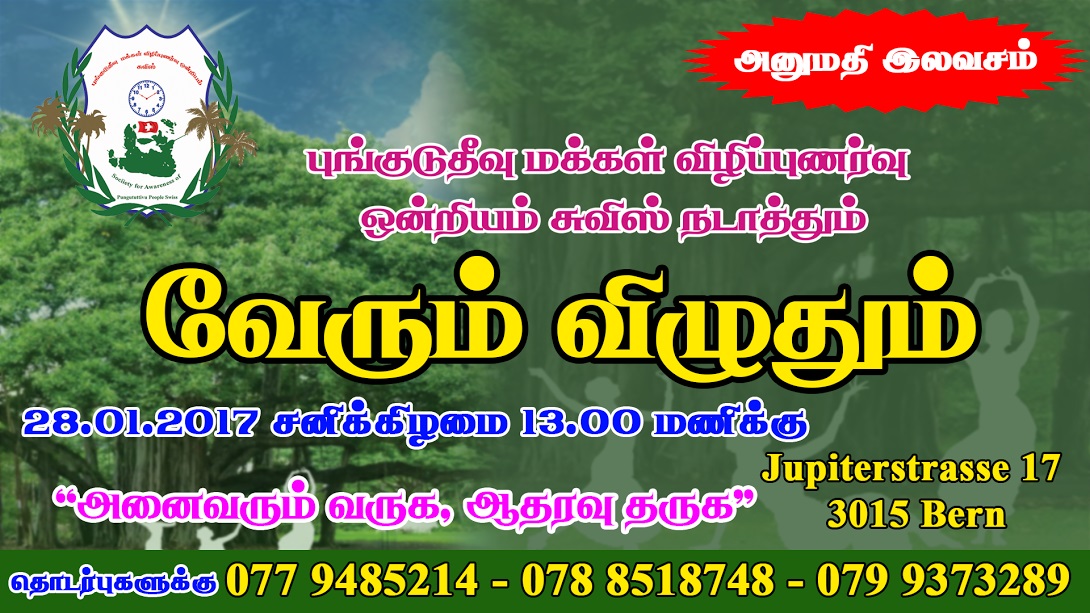 • 28.01.2017 இல் “சுவிஸ் வாழ் அனைத்து மக்களையும்” ஒன்றிணைத்து, “வேரும் விழுதும்” விழா..!! (முன்னறிவித்தல்)