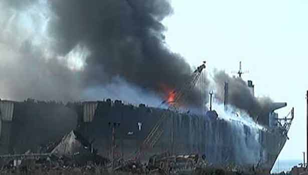 பாகிஸ்தானின் கராச்சி நகரையொட்டி கடானி என்ற துறைமுகத்தில் காலாவதியான கப்பல்களை உடைக்கும் துறைமுகம் ஒன்று அமைந்துள்ளது. இந்த துறைமுகத்தில் இன்று வழக்கம்போல் பணிகள் நடைபெற்று வந்தது.