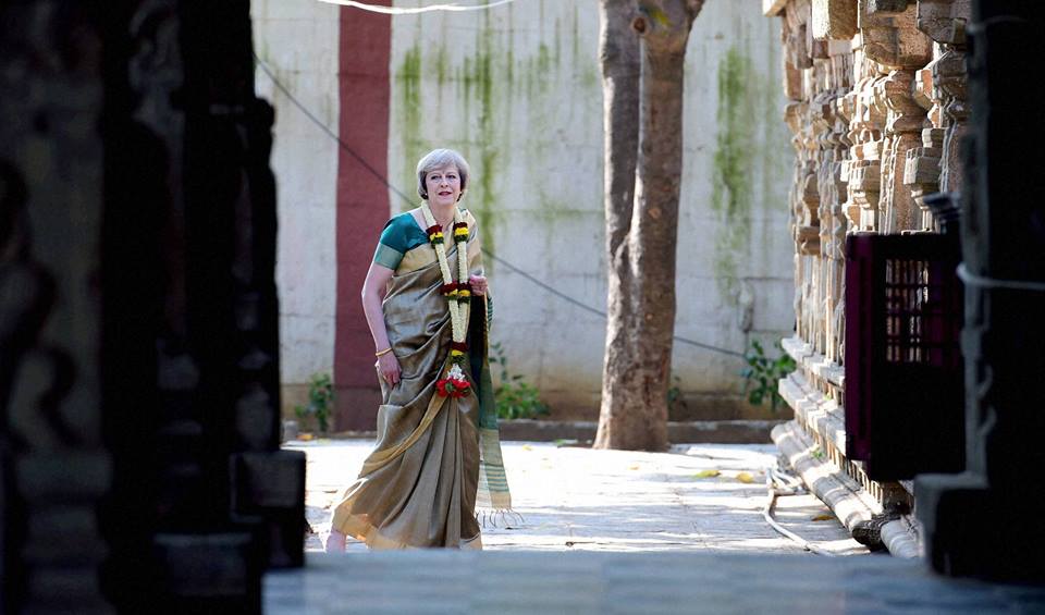 • சேலை கட்டி கோவிலுக்கு சென்ற பிரித்தானிய பிரதமர் தெரசா மே..!! (படங்கள்)