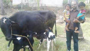 • உரிமையாளரின் இரட்டை குழந்தை பிறந்தநாளில் 2 கன்றுகளை ஈன்ற பசு…!!