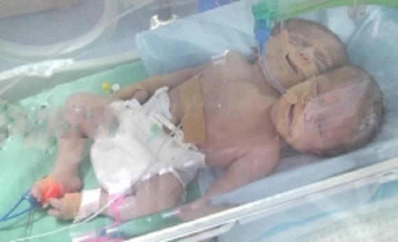 இதற்கிணங்க இரண்டு தலைகள் ஒரு உடல் எனப் பிறந்த குழந்தை ஒன்று கண்ணாடிப் பெட்டிக்குள் வைக்கப்பட்டுள்ள நிலையில் இதுவரை ஆரோக்கியமாக உள்ளதாக தெரிவிக்கப்பட்டுள்ளது.