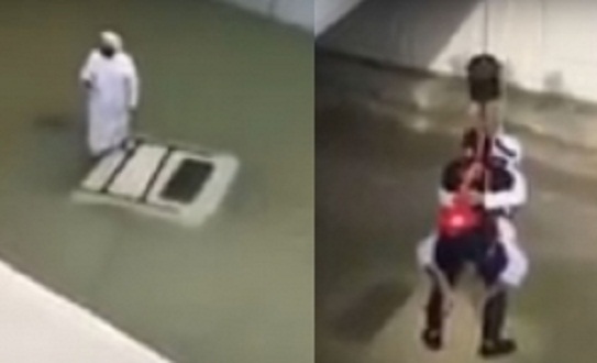இவ்வாறு கட்டாரில் ஏற்பட்ட பாரிய மழை வெள்ளத்தில் காருடன் சிக்கி உதவிக்காக தவித்த நபரை மீட்கும் காட்சியே இதுவாகும். இது ஒரு வரலாற்றுப் பதிவு என்பது குறிப்பிடத்தக்கது.