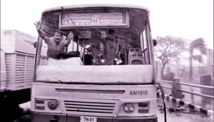 • புயலின் வேகம் தாங்காமல் பஸ்சின் கண்ணாடி உடைந்தது…!!