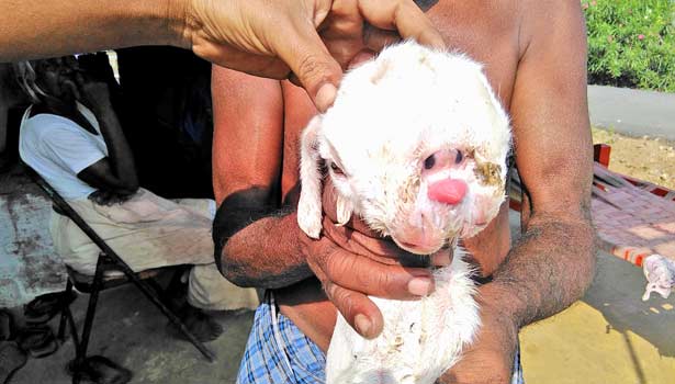 இதில் ஒரு ஆட்டுக்குட்டி மிகவும் அதிசயமாக இருந்தது. அந்த ஆட்டுக்குட்டிக்கு 3 முகம் இருந்தது. மேலும் 4 கண்கள் இருந்தது. தலையின் நடுப்பகுதியில் 2 கண்களும், பக்கவாட்டில் 2 கண்களும் இருந்தது.