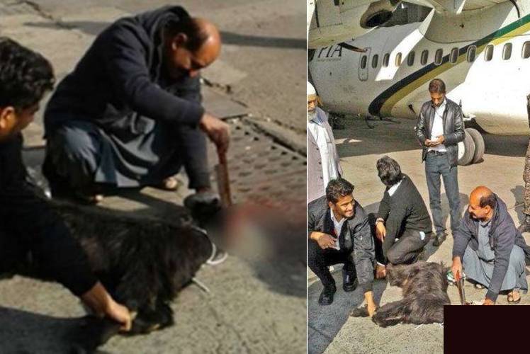 • இனிமேல் விபத்து ஏற்படக்கூடாது! ஆட்டை வெட்டி ரத்தப்பலி கொடுத்த விமான ஊழியர்கள்…!!