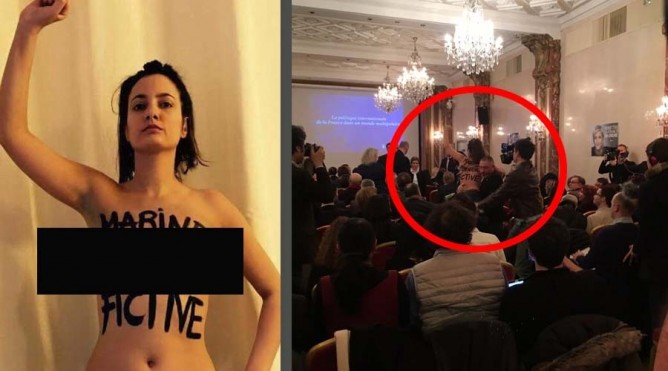 • ஜனாதிபதி வேட்பாளர் கூட்டத்தில் நிர்வாணமாக நுழைந்த பெண்: வெளியான படம்..!!