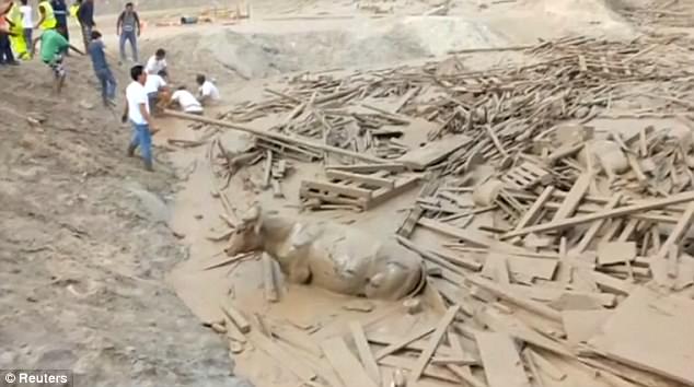 • சேற்று வெள்ளத்தில் சிக்கி போராடி தப்பிய பெண்..!! (வீடியோ)