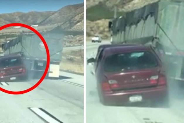 கலிஃபோர்னியா மாகாண நெடுஞ்சாலையிலே இந்த விபத்து நடந்துள்ளது. குறித்த நெடுஞ்சாலையில் கேரட்டுகளை ஏற்றிச் சென்ற லொறிஅவ்வழியாகச் சென்ற ஒரு காருடன் உரசியதில் கார் லொறியின் பின் பகுதியில் மாட்டிக்கொண்டுள்ளது..