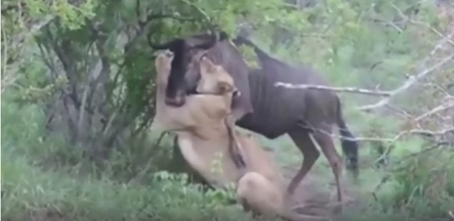 • சிங்கத்திடம் சிக்கிய மாடு, போராடி சிங்கத்தை துரத்தியடித்த காட்சி..!! (வீடியோ)