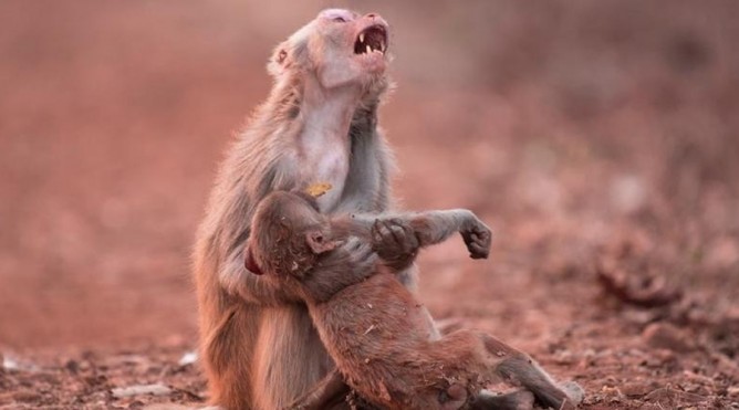 • பெற்ற பிள்ளையை கையில் ஏந்தி கதறி அழுத தாய் குரங்கு..!!
