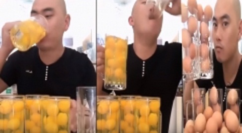 சீனா இளைஞர் ஒருவர் ஐம்பது பச்சை முட்டைகளை இருபது நிமிடத்திற்குள் குடித்துள்ளார். இணையத்தில் தற்போது சீனா இளைஞரின் வீடியோ தான் ஹாட்டாக உள்ளது. அந்த இளைஞர் 5 பீர் கப்புகளில்களில் முட்டைகளை உடைத்து ஊற்றுகிறார்.