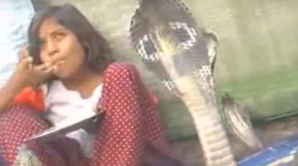 பாம்பு பாதுகாக்கும் தெய்வப் பெண் குழந்தை..!! (வீடியோ)