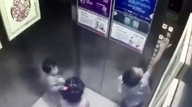 லிஃப்ட் மூடியதும் அச்சத்தில் ஆழ்ந்த குழந்தை அழுதுக்கொண்டு லிஃப்ட்டின் கதவினை வேகமாக தட்டியுள்ளது.
