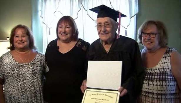 97 வயதில் பள்ளியில் இருந்து பட்டம் பெற்ற இரண்டாம் உலகப்போர் வீரர்..!!