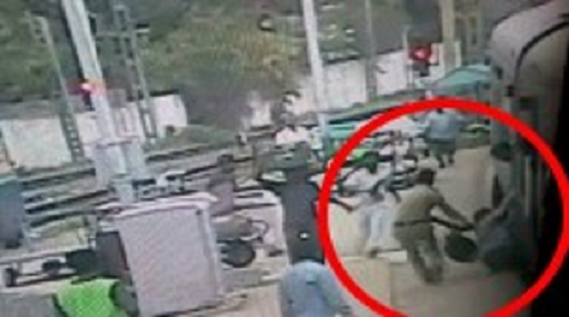 ரயில் நிலையத்தில் இருந்த சிசிடிவி கமெராவில் பதிவான காட்சிகளை கண்ட பலர் காவலரின் செயலை பாராட்டி வருகின்றனர்.