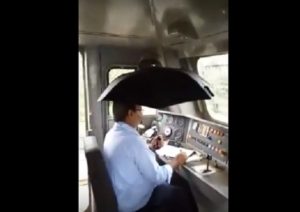 • குடைபிடித்தபடி ரயில் எஞ்ஜினை இயக்கும் டிரைவர்..!! (வீடியோ)