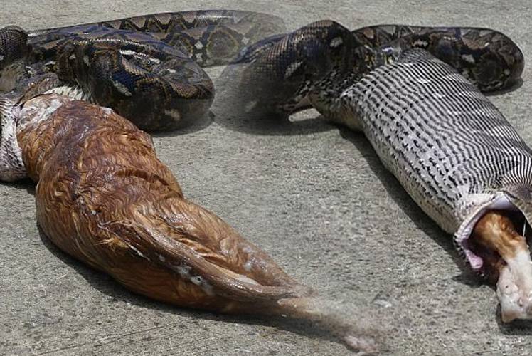 • 3 கிலோ எடை கொண்ட பூனையை விழுங்கி துப்பிய மலைப்பாம்பு..!! (வீடியோ)