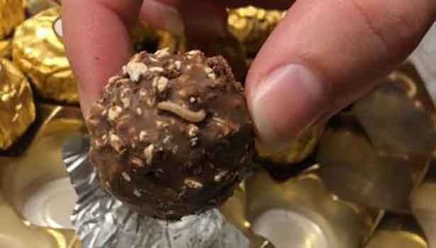 அமெரிக்காவைச் சேர்ந்த ரேச்சல் வைல் என்ற பெண் தான் உண்ட சாக்லேட்டில் புழுக்கள் இருந்ததாக பேஸ்புக்கில் பதிவு செய்திருந்தார். மேலும் அது குறித்த வீடியோவையும் பதிவு செய்திருந்தார். அந்த வீடியோவில் அவர் பிரிக்கும் ஒவ்வொரு சாக்லேட்டிலும் புழுக்கள் இருந்தன. மேலும் அவர் இந்த சாக்லேட்டை யாரும் வாங்க வேண்டாம் எனவும் குறிப்பிட்டிருந்தார்.