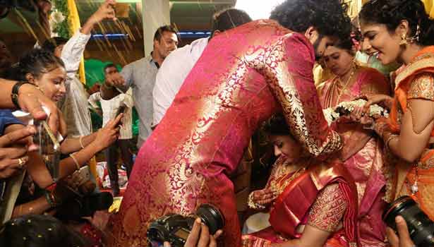 அதனைத் தொடர்ந்து அவர்கள் இருவருக்கும் பெற்றோர் முன்னிலையில் நிச்சயதார்த்தமும் நடந்தது. பின்னர் குடும்பத்தினர் அவர்களுக்கு ஆசீர்வாதம் செய்தனர். இந்த நிகழ்ச்சியில் நடிகை சினேகா, அவரது கணவர் பிரசன்னா உள்பட நடிகர், நடிகைகள், டி.வி. நடிகைகள் பலரும் கலந்து கொண்டனர்.