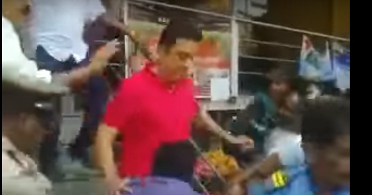 காலில் விழுந்த வணங்கிய ரசிகரை கன்னத்தில் அறையும் கமல்..!! (வீடியோ)