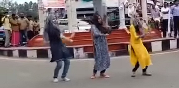ரோட்டில் ஜிமிக்கி கம்மல் பாடலுக்கு அடிய முஸ்லீம் மாணவிகள்..!! (வீடியோ)