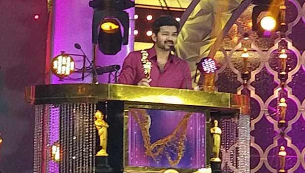 விகடன் விருது வழங்கும் விழா சென்னையில் இன்று நடைபெற்றது. 2017-ம் ஆண்டின் சிறந்த நடிகர் விருது நடிகர் விஜய்க்கு வழங்கப்பட்டது.