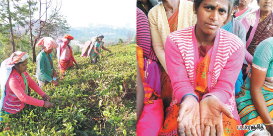 தேயிலைக் கொழுந்துகளை பதினைந்து நாட்கள் இடைவெளியில் மாதமிருமுறை பறிக்கவேண்டும். இது தொடர்ந்து வருடம் முழுவதும் நடைபெறும். இதனை பறிக்கும் வேலைகளை பெரும்பாலும் வயதான மற்றும் இளம் வயதுப் பெண்களும் இணைந்தே செய்கின்றனர். இப்படி பறிக்கப்பட்ட தேயிலை இலைகளைத் தொழிற்சாலைகளுக்கு தலைச் சுமையாகக் கொண்டு சென்று சேர்க்கும், இவர்களுக்கு பணிப்பாதுகாப்பற்ற தினக் கூலியே வழங்கப்படுகின்றது.
