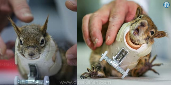 கால்களை இழந்து தவித்த அணிலுக்கு புனரமைப்பு மருத்துவர்கள் அறுவை சிகிச்சை செய்து பிரத்தேக சக்கரங்களை வடிவமைத்து உடலுடன் பொருத்தியுள்ளனர். இதனால் கால்கள் இல்லாமலே அணில் சுதந்திரமாக சுற்றி வருகிறது.