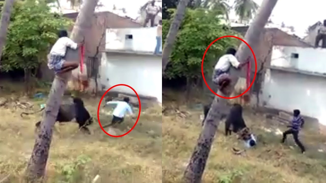 • சினம் கொண்ட காளையை அடக்கிய வீரன்!!(வீடியோ)