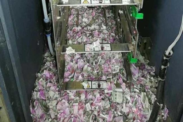 இந்த நிலையில், கடந்த 11 ஆம் திகதி ஏ.ரி.எம் இயந்திரத்தின் பழுதை சரி செய்வதற்காக சிலர் அங்கு வந்தனர். அப்போது அவர்கள் இயந்திரத்துக்குள் வைக்கப்பட்டு இருந்த ஏராளமான ரூ.500 மற்றும் ரூ.2,000 நோட்டுகள் சிறு சிறு துண்டுகளாக வெட்டப்பட்டு கிடந்ததைக் கண்டு அதிர்ச்சி அடைந்தனர். பின்னர், அவை அனைத்தும் எலிகளால் கடித்துக் குதறப்பட்டவை என்பது தெரிய வந்தது. ரூ.12,38,000 மதிப்புள்ள ரூ.500 மற்றும் ரூ.2,000 நோட்டுகளை இப்படி எலிகள் வேட்டையாடி பணத்தின் மதிப்பை இழக்கச் செய்துள்ளன.