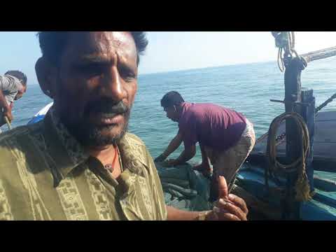 கடலில் மீனவர்கள் மீன் பிடிவளையில் இறால் பிடிக்கும் காட்சி!!(வீடியோ)