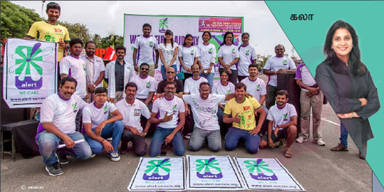 சென்னையில் மக்களோடு வாகனங்களும் போட்டி போட்டுக்கொண்டு பெருகி வருகின்றன. காலை விடியல் தொடங்கி நள்ளிரவுவரை அனைவரும் ஏதோ பரபரப்புடன் பயணிக்கிறோம். இதில் ஒரு விபத்து நடந்து ஒரு மனிதர் உயிருக்கு போராடும் போது மிகச் சாதாரணமாக அவ்விடத்தை விட்டு பலரும் கடந்து செல்வதைப் பார்க்கிறோம். பலரும் அனுதாபம் கொள்கிறார்களே தவிர உதவ முன்வருவதில்லை. இதுதான் மிகவும் வேதனைக்குரியது. இப்படி விபத்தில் சிக்கியவர்களை காப்பாற்றுவதற்கான முதலுதவி சிகிச்சையை எப்படி செய்வது என்று பயிற்சியளித்து வருகிறார் மென்பொருள் பொறியாளரும், அலர்ட் அமைப்பின் நிறுவனருமான கலா பாலசுந்தரம்.