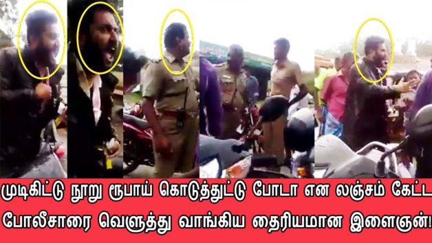 முடிகிட்டு நூறு ரூபாய் கொடுத்துட்டு போடா என லஞ்சம் கேட்ட போலீசாரை வெளுத்து வாங்கிய தைரியமான இளைஞன்!!(வீடியோ)