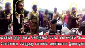 • முடிகிட்டு நூறு ரூபாய் கொடுத்துட்டு போடா என லஞ்சம் கேட்ட போலீசாரை வெளுத்து வாங்கிய தைரியமான இளைஞன்!!(வீடியோ)