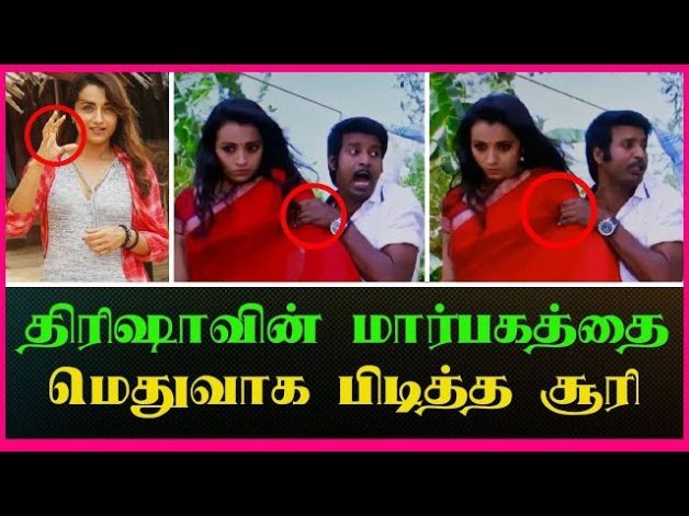 நடிகை திரிஷாவின் மார்பகத்தை மெதுவாக பிடித்த நடிகர் சூரி விடியோ