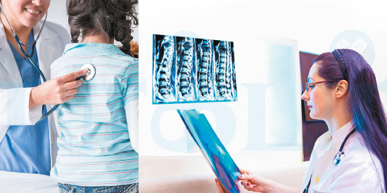 இதன் இணைப்புகள் ஒவ்வொன்றையும் பரிசோதிப்பார். முதுகெலும்பின் அமைப்பில் ஏதாவது கோளாறு இருக்கிறதா என்றும், முதுகெலும்பை அசைப்பதில் கஷ்டம் உள்ளதா என்றும் பார்ப்பார். குழந்தையின் நடையையும் பார்ப்பார். குழந்தையால் இட, வலமாக திரும்ப முடிகிறதா, முன்னோக்கி வளைந்து கால் கட்டை விரலைத் தொட முடிகிறதா, உடலைப் பின்னோக்கி வளைக்க முடிகிறதா என்றெல்லாம் பார்ப்பார்.